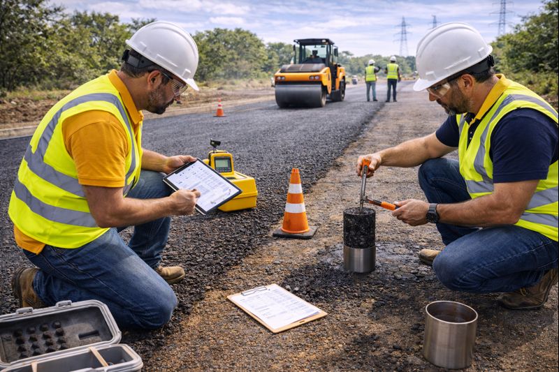 Continuous quality monitoring with density testing, compaction verification, and compliance checks.