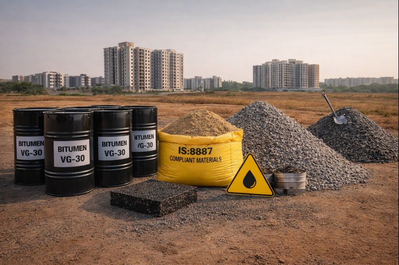 IS:8887 compliant materials, VG-30 grade bitumen, and tested aggregates ensuring long-lasting road performance.
